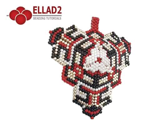 Ik leg kort het principe van het rijgen van een driehoek in peyote stitch uit aan de hand van kleurenfoto’s.