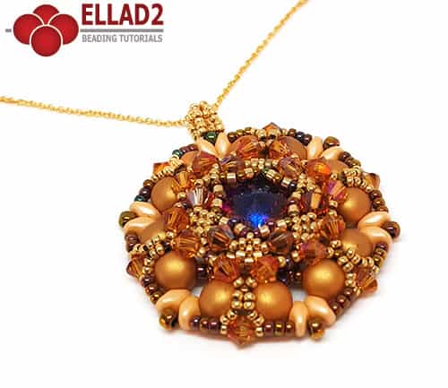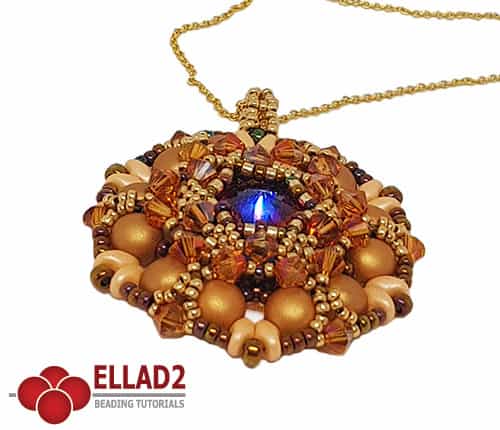 De omranding is hetzelfde als maar i.p.v. peyote stitch en een stervorm rijgt u deze keer met 2-hole Cabochons en oude vertrouwde SuperDuo en natuurlijk ook nog Swarovski bicones.