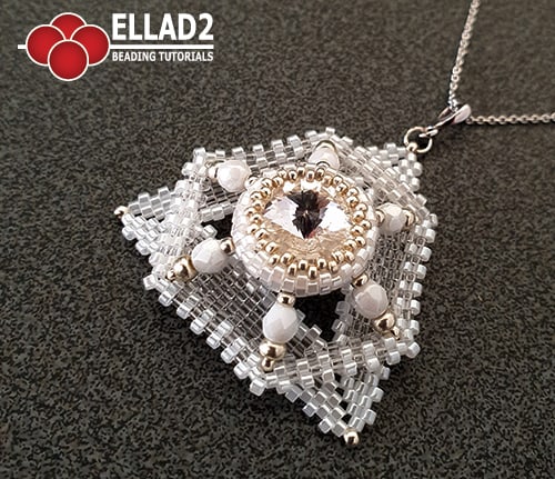 Hexagon en een driehoek samen met een Swarovski Rivoli. De transparante Miyuki Delica’s geeft deze hanger een heel speciaal effect.