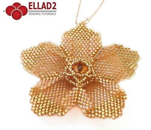 U kunt zelf bepalen hoe u deze bloem gaat gebruiken: hanger, deel van een ketting of een bead embroidery armband, broche, etc…
