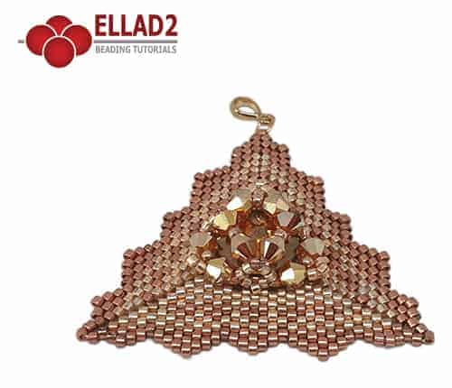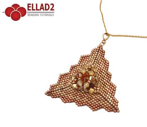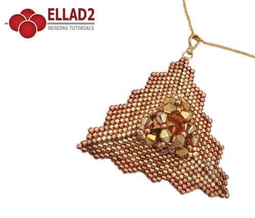 Een driehoekige hanger in peyote stitch.