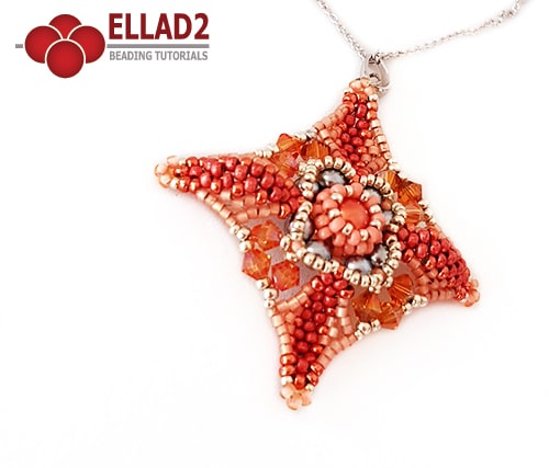 Beading Tutorial for Quadra Pendant is very detailed, easy to follow, step by step, with clear beading instructions and color photos of each step. Tutorial has 12 pages.